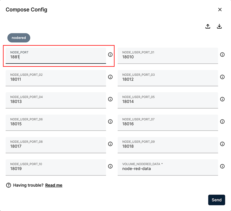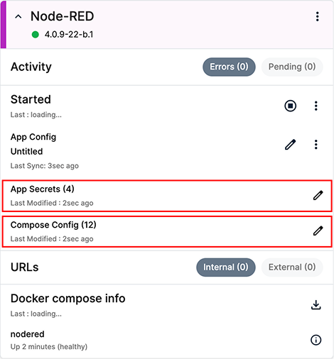 For this guide, you will update the username and password, which are part of App Secrets, and adjust the service port, which is part of the Compose Config. Finally, you will verify access to the Node-RED editor using the new settings.