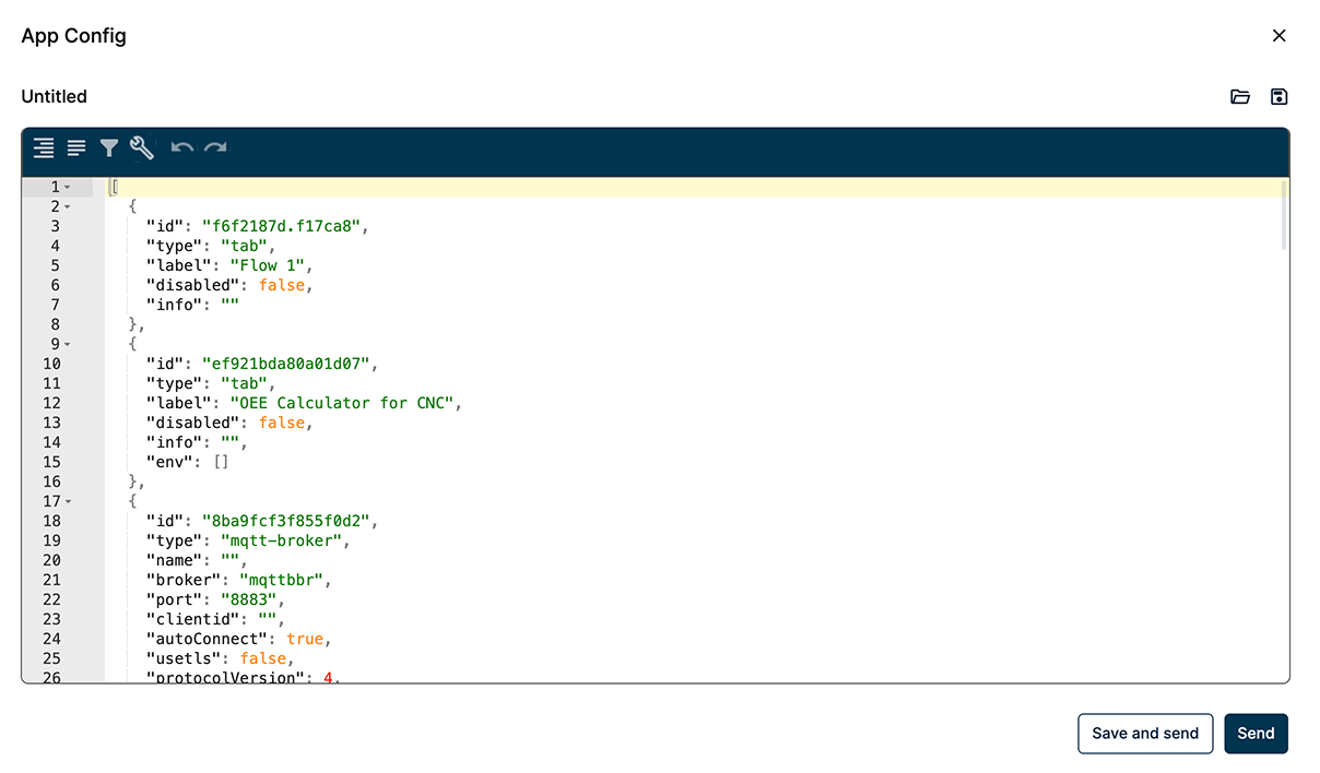 After applying the configuration, you must restart the application to ensure Node-RED reloads the flow data.
